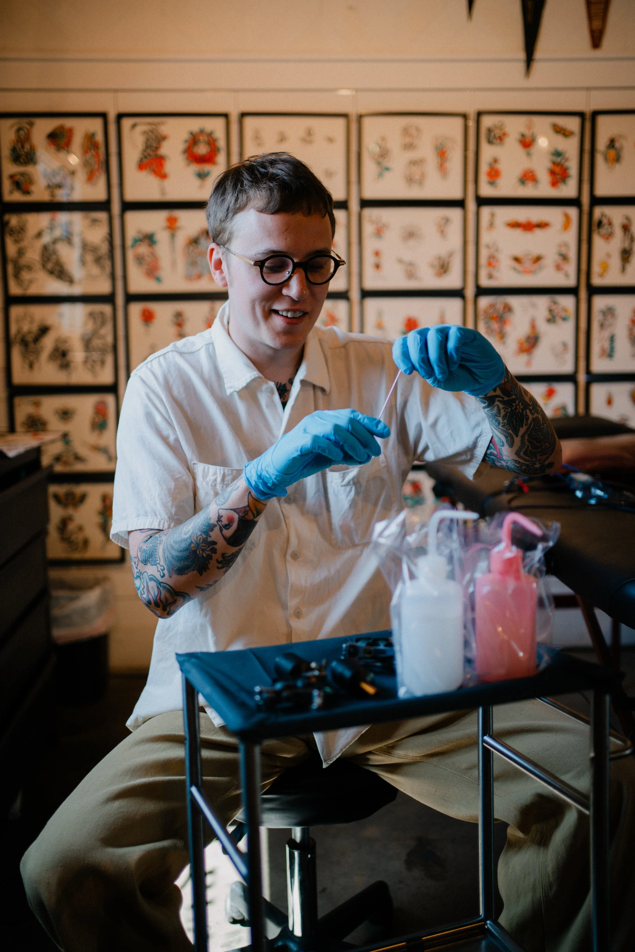 I am a Calgary-based tattoo artist with a formal foundation in fine arts, having graduated from the Alberta University of the Arts in 2018. My path to tattooing was a natural one, shaped by a lifelong relationship with drawing and a deep immersion in the subcultures that have always intersected with tattoo culture: comics, punk music, heavy music artwork, and skateboarding.